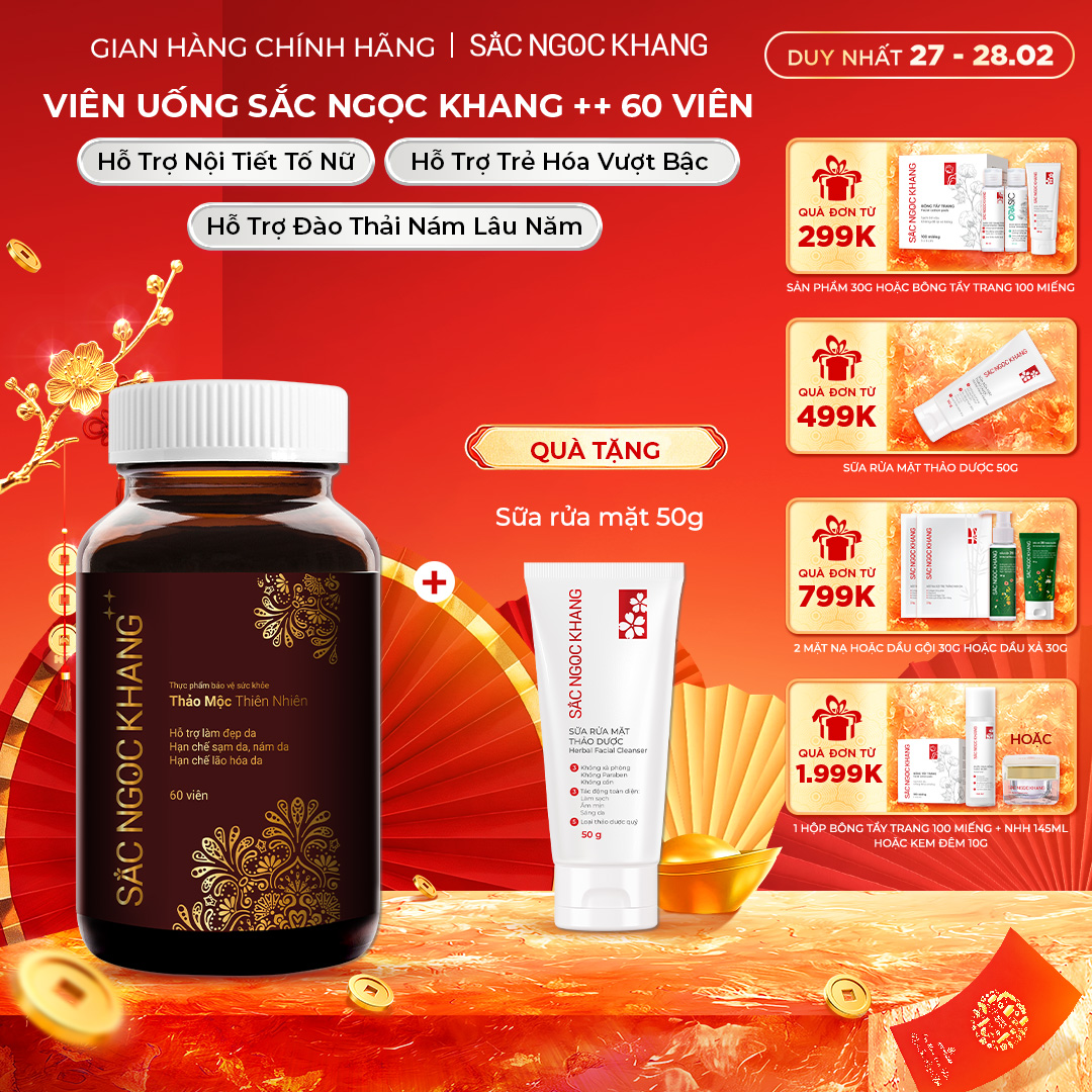 Viên Uống Mờ Nám, Hạn Chế Lão Hóa, Khỏe Đẹp Da Sắc Ngọc Khang++ Hộp 60 Viên