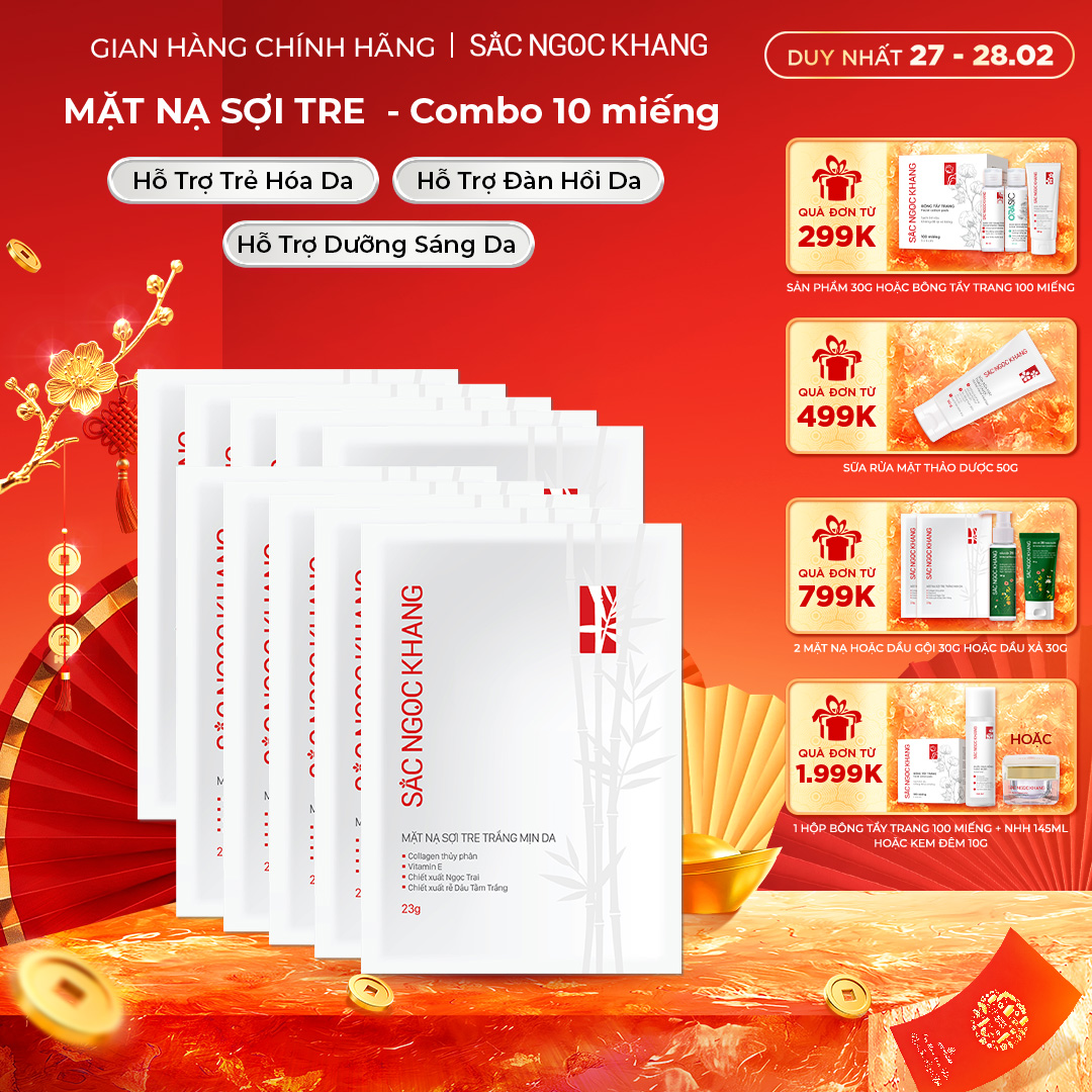 Set 10 Mặt Nạ sợi tre dưỡng trắng mịn da Sắc Ngọc Khang 25g/miếng