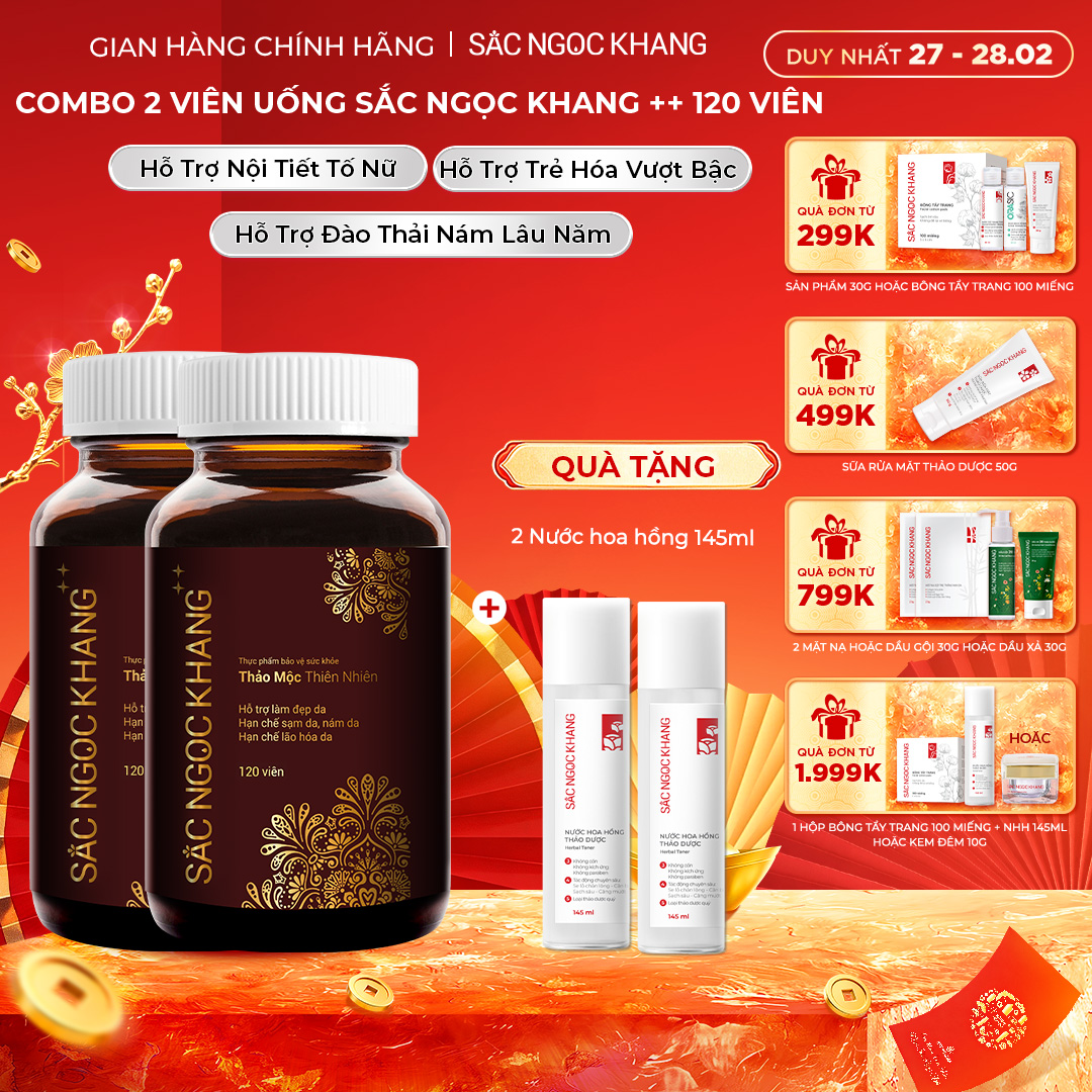 Combo 3 Viên Uống Mờ Nám, Hạn Chế Lão Hóa, Khỏe Đẹp Da Sắc Ngọc Khang++ 120v – Liệu trình 3 tháng