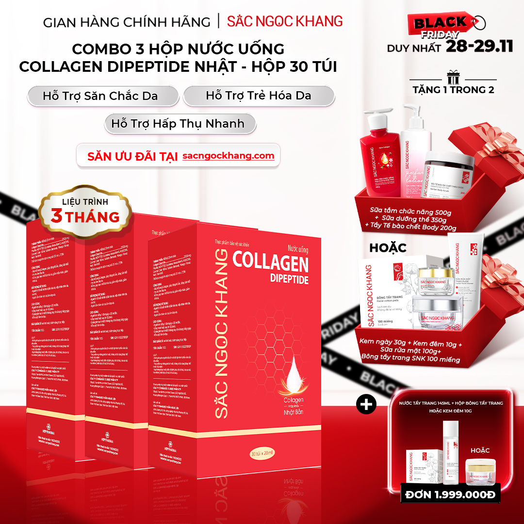 Combo 3 Hộp Nước Uống Collagen Dipeptide Mờ Nếp Nhăn – Dưỡng Ẩm Mịn Sắc Ngọc Khang