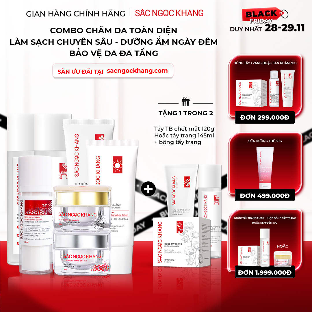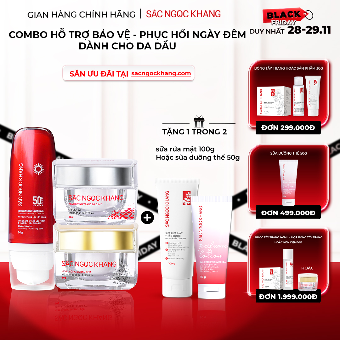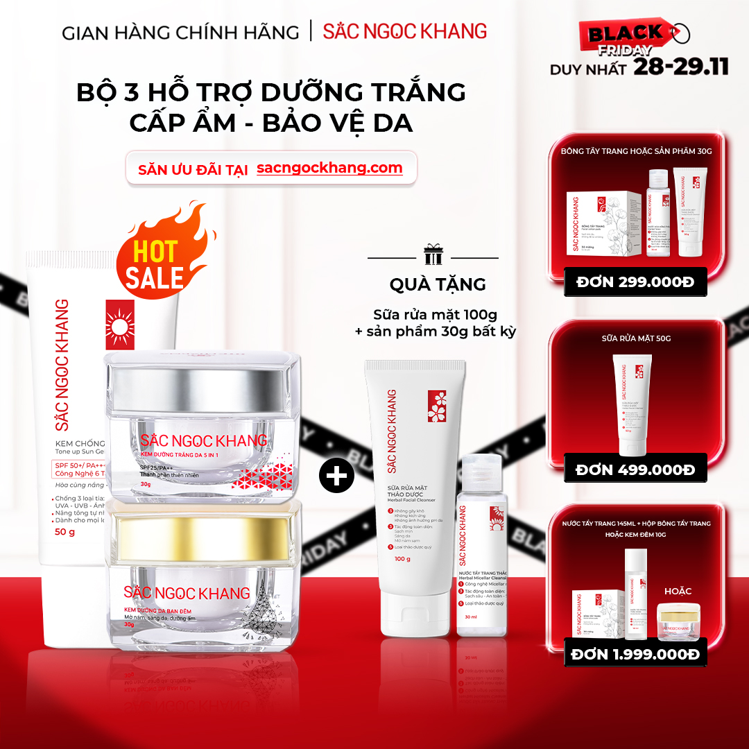 Combo Dưỡng Da Ngày Và Đêm Sắc Ngọc Khang (Kem Dưỡng Da Ban Đêm 30g và Kem Dưỡng Da Ban Ngày 5in1 30g, tặng Sữa rửa mặt 100g hoặc sữa dưỡng thể 50g)