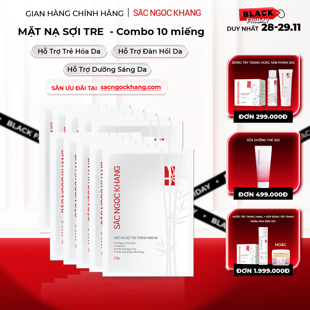 Set 10 Mặt Nạ sợi tre dưỡng trắng mịn da Sắc Ngọc Khang 25g/miếng