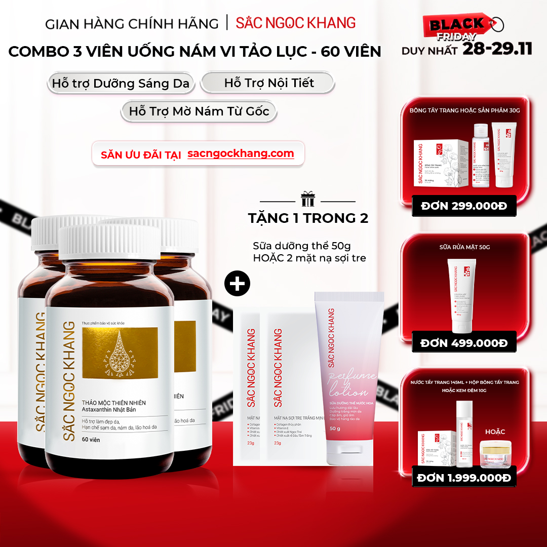Combo 3 Viên Uống Mờ Nám, Hạn Chế Lão Hóa, Khỏe Đẹp Da Sắc Ngọc Khang++ 120v – Liệu trình 3 tháng