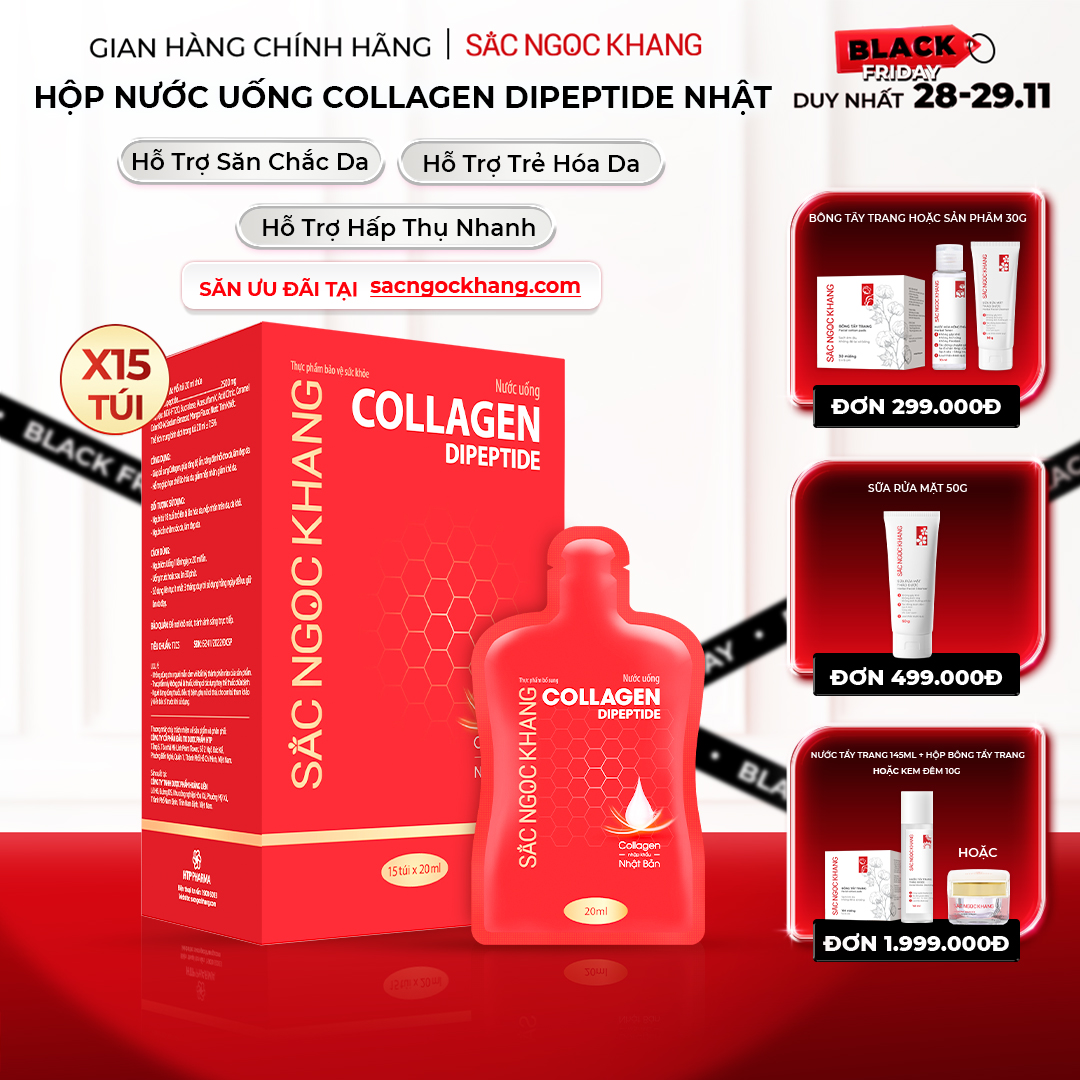 Nước Uống Collagen Dipeptide Mờ Nếp Nhăn – Dưỡng Ẩm Mịn Da Sắc Ngọc Khang (Hộp 30 túi x 20 ml)