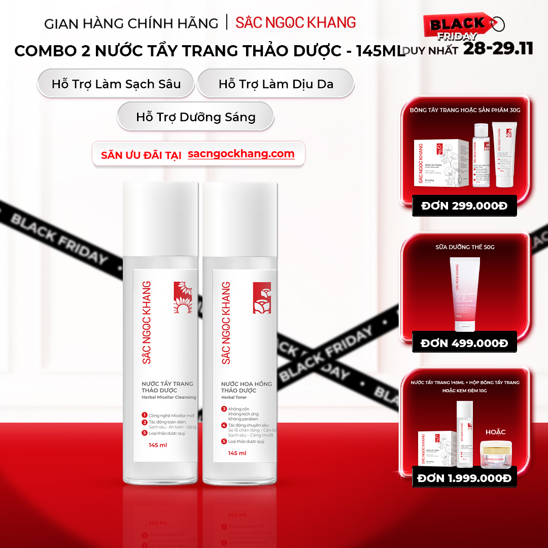 Combo Nước hoa hồng thảo dược Sắc Ngọc Khang 145ml + Nước tẩy trang thảo dược Sắc Ngọc Khang 145ml