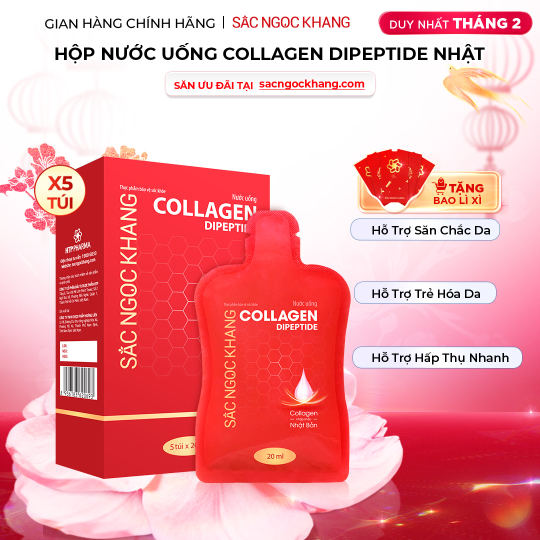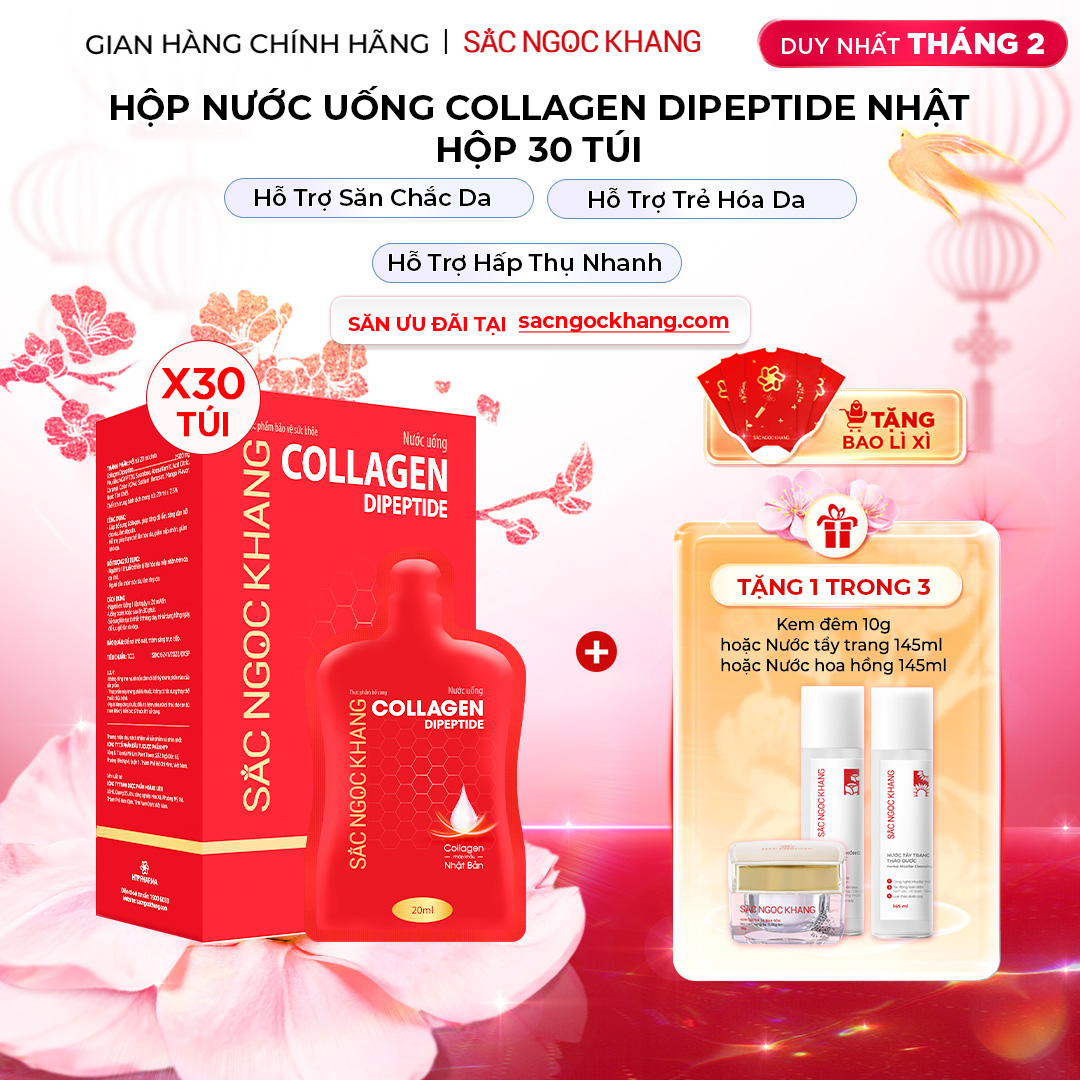 Nước Uống Collagen Dipeptide Mờ Nếp Nhăn – Dưỡng Ẩm Mịn Da Sắc Ngọc Khang (Hộp 30 túi x 20 ml)