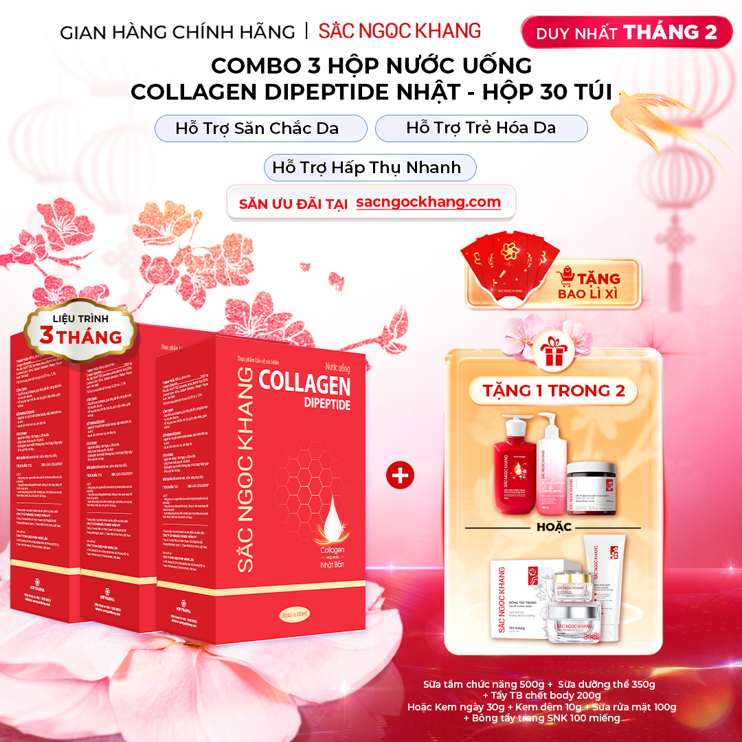 Combo 2 Nước Uống Collagen Dipeptide Mờ Nếp Nhăn – Dưỡng Ẩm Mịn Sắc Ngọc Khang- Liệu trình 2 tháng