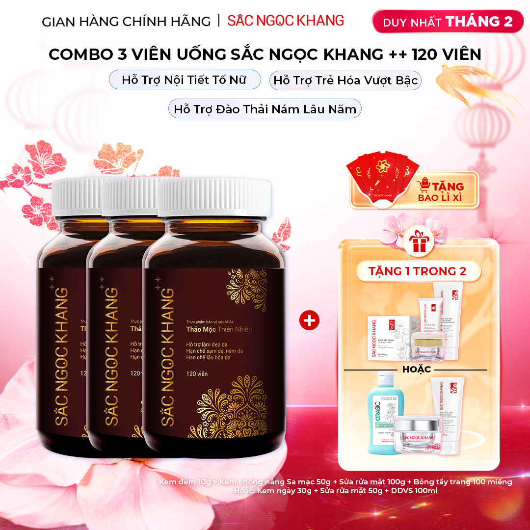Combo 3 Viên Uống Mờ Nám, Hạn Chế Lão Hóa, Khỏe Đẹp Da Sắc Ngọc Khang++ 120v – Liệu trình 3 tháng