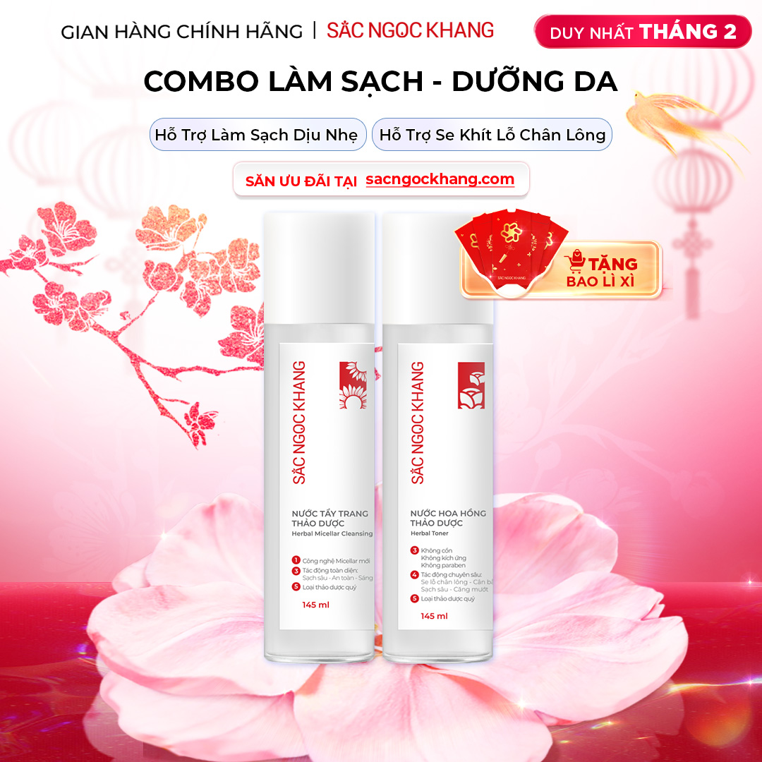 Combo Nước hoa hồng thảo dược Sắc Ngọc Khang 145ml + Nước tẩy trang thảo dược Sắc Ngọc Khang 145ml