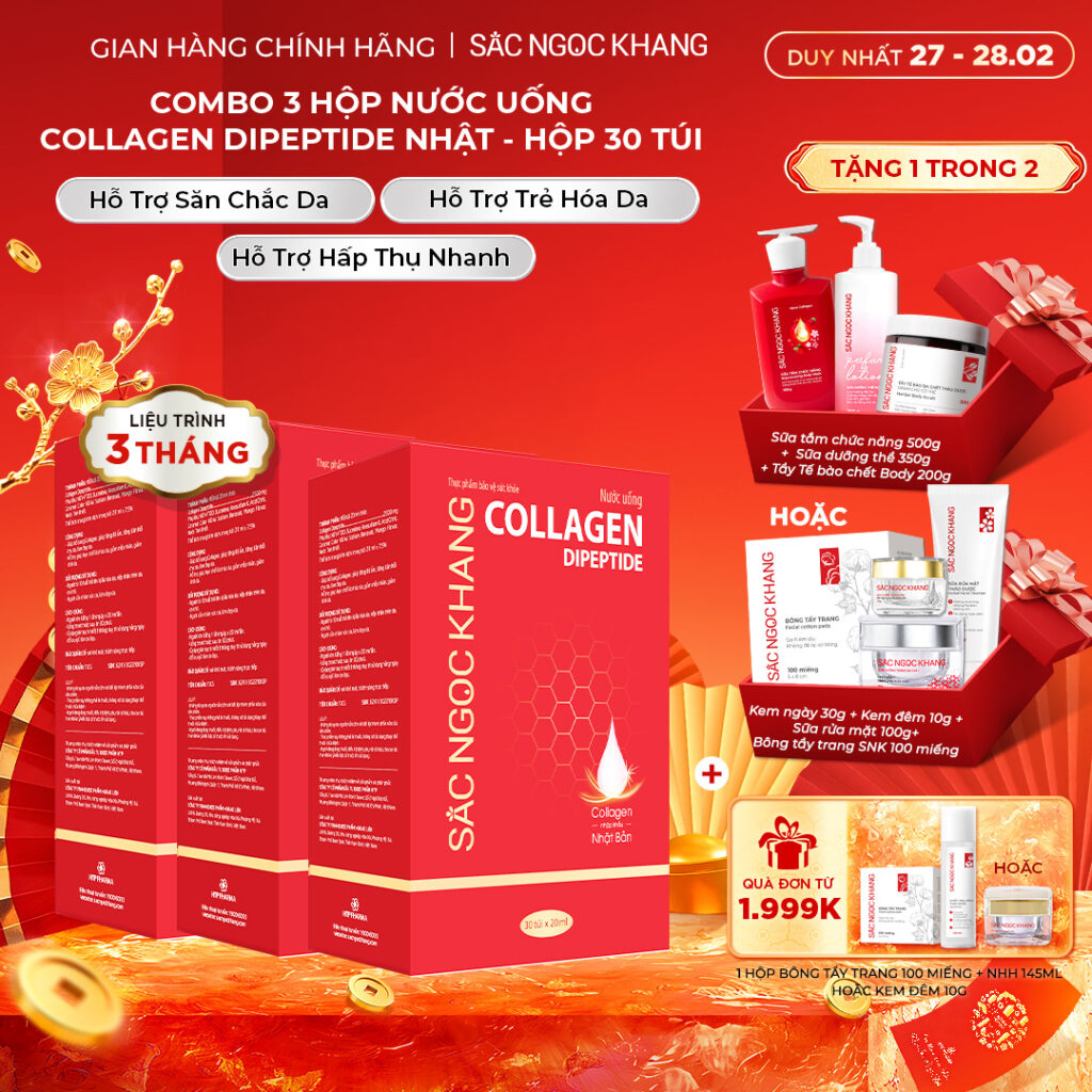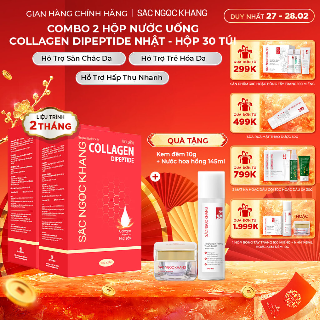 Combo 2 Nước Uống Collagen Dipeptide Mờ Nếp Nhăn – Dưỡng Ẩm Mịn Sắc Ngọc Khang- Liệu trình 2 tháng
