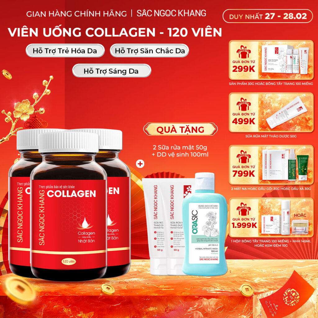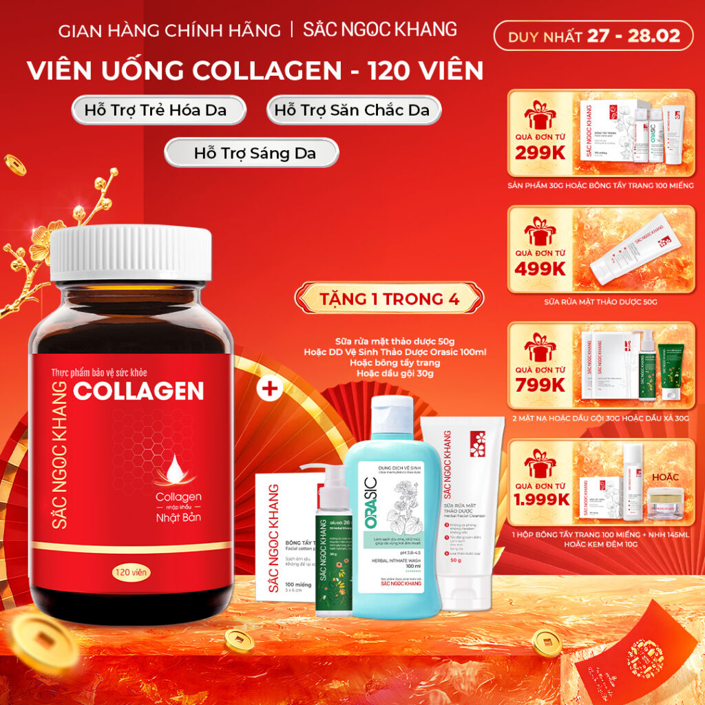 Viên Uống Collagen Dipeptide Hỗ Trợ Mờ Nếp Nhăn, Dưỡng Da Ẩm Mịn Sắc Ngọc Khang 120 viên