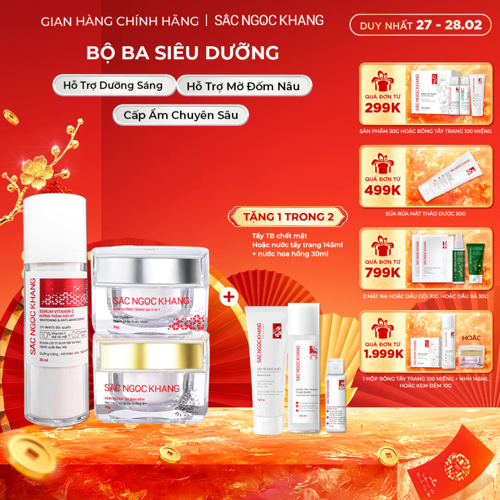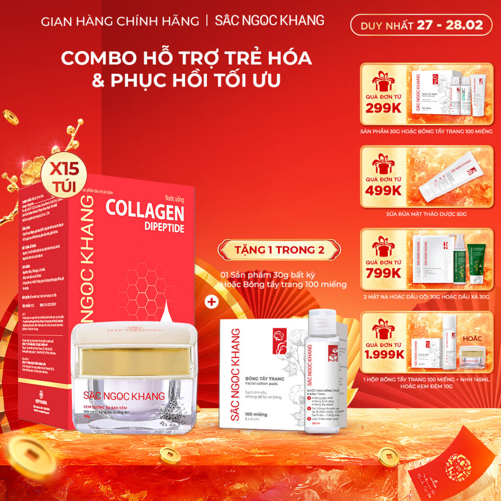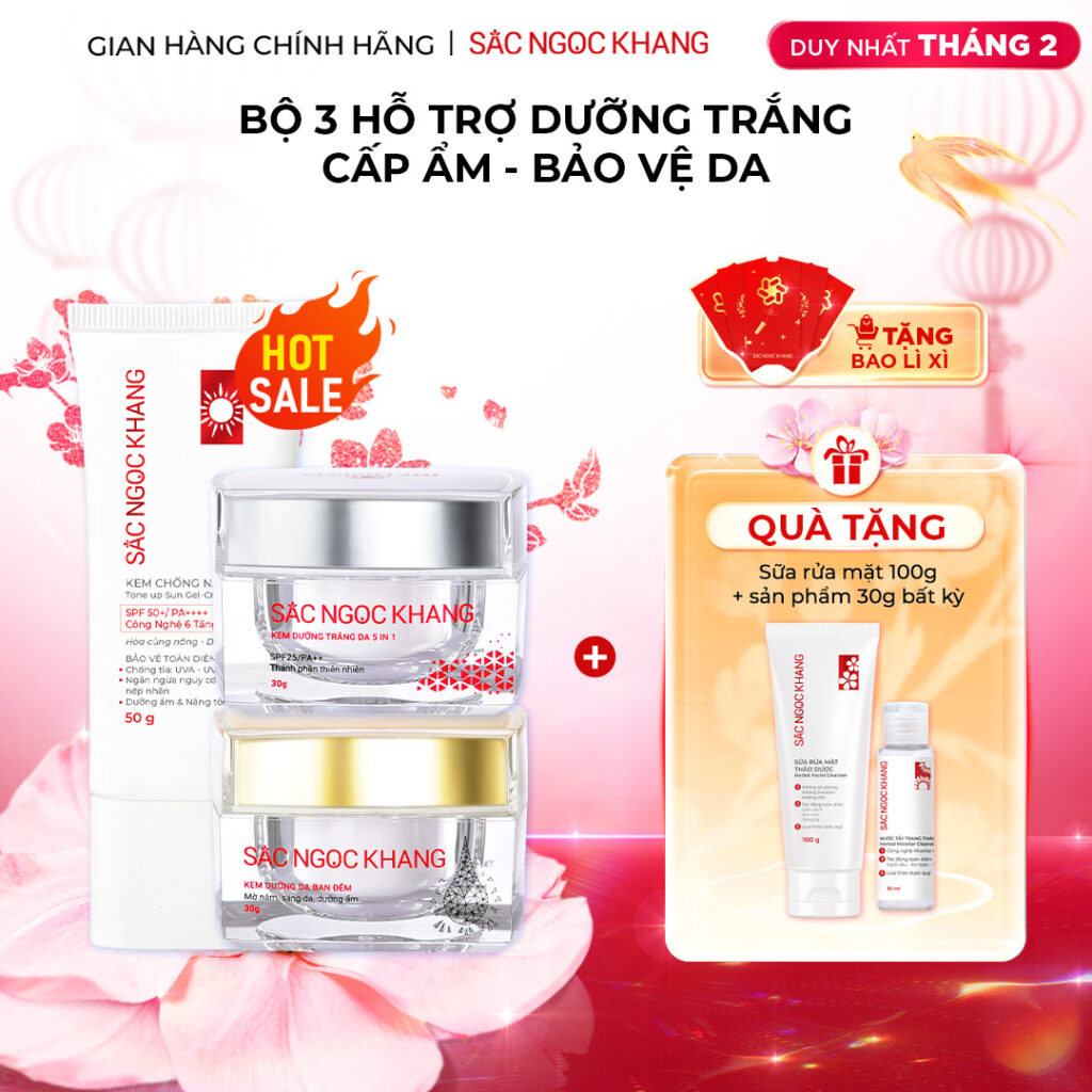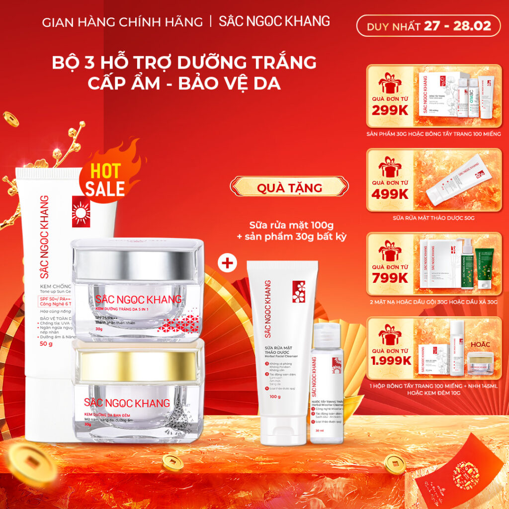 Combo Dưỡng Da Ngày Và Đêm Sắc Ngọc Khang (Kem Dưỡng Da Ban Đêm 30g và Kem Dưỡng Da Ban Ngày 5in1 30g, tặng Sữa rửa mặt 100g hoặc sữa dưỡng thể 50g)