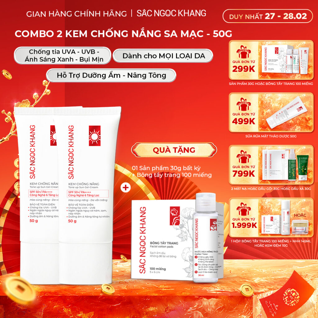 Combo 02 Kem Chống Nắng “Sa Mạc” Nâng Tông Sắc Ngọc Khang 50g