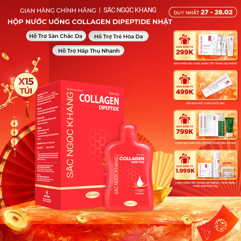 Nước Uống Collagen Dipeptide Mờ Nếp Nhăn – Dưỡng Ẩm Mịn Da Sắc Ngọc Khang (Hộp 15 túi x 20 ml)