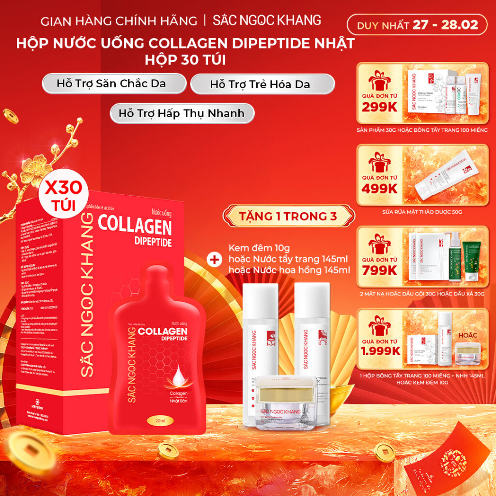 Nước Uống Collagen Dipeptide Mờ Nếp Nhăn – Dưỡng Ẩm Mịn Da Sắc Ngọc Khang (Hộp 30 túi x 20 ml)