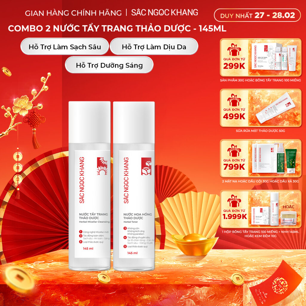Combo Nước hoa hồng thảo dược Sắc Ngọc Khang 145ml + Nước tẩy trang thảo dược Sắc Ngọc Khang 145ml