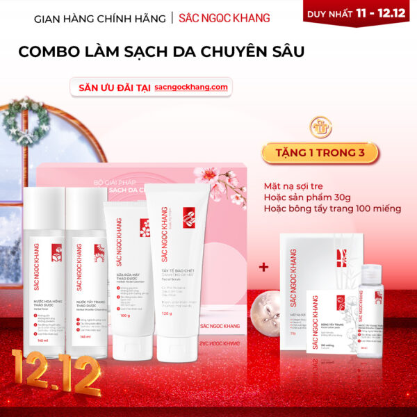 Combo 7 Sản Phẩm Chăm Sóc Da Toàn Diện Chuyên Sâu Sắc Ngọc Khang (Nước Tẩy Trang Thảo Dược, Sữa Rửa Mặt Thảo Dược, Nước Hoa Hồng Thảo Dược, Serum Siêu Dưỡng Trắng Vitamin C, Kem Dưỡng Da 5 In 1, Kem Dưỡng Ban Đêm, Kem Chống Nắng)