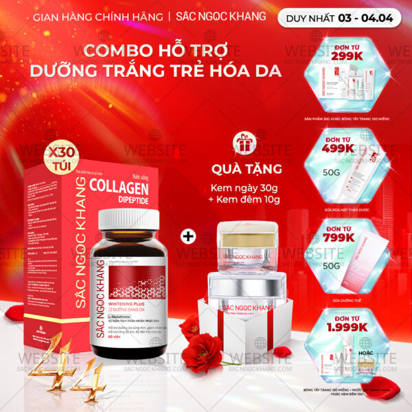 Combo 7 Sản Phẩm Chăm Sóc Da Toàn Diện Chuyên Sâu Sắc Ngọc Khang (Nước Tẩy Trang Thảo Dược, Sữa Rửa Mặt Thảo Dược, Nước Hoa Hồng Thảo Dược, Serum Siêu Dưỡng Trắng Vitamin C, Kem Dưỡng Da 5 In 1, Kem Dưỡng Ban Đêm, Kem Chống Nắng)