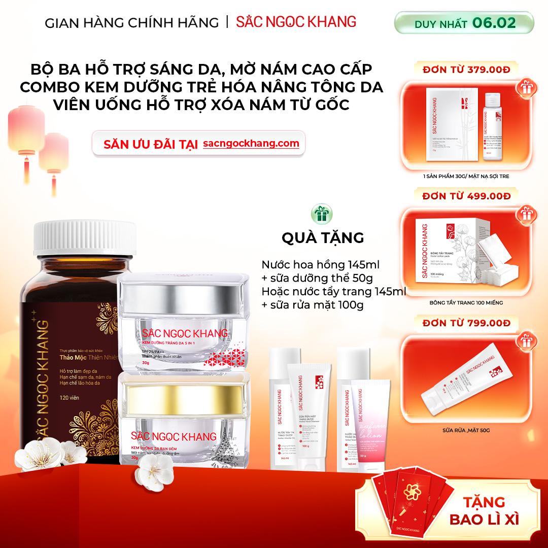 Combo Mờ Nám Dưỡng Trắng Cao Cấp Sắc Ngọc Khang: Viên Uống Sắc Ngọc Khang ++, Kem Dưỡng Da Ban Đêm, Kem Dưỡng Da Ban Ngày