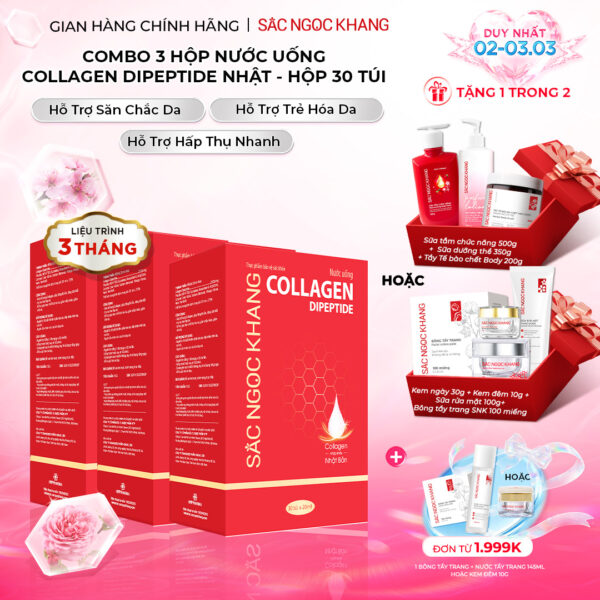 Nước Uống Collagen Dipeptide Mờ Nếp Nhăn – Dưỡng Ẩm Mịn Da Sắc Ngọc Khang (Hộp 30 túi x 20 ml)
