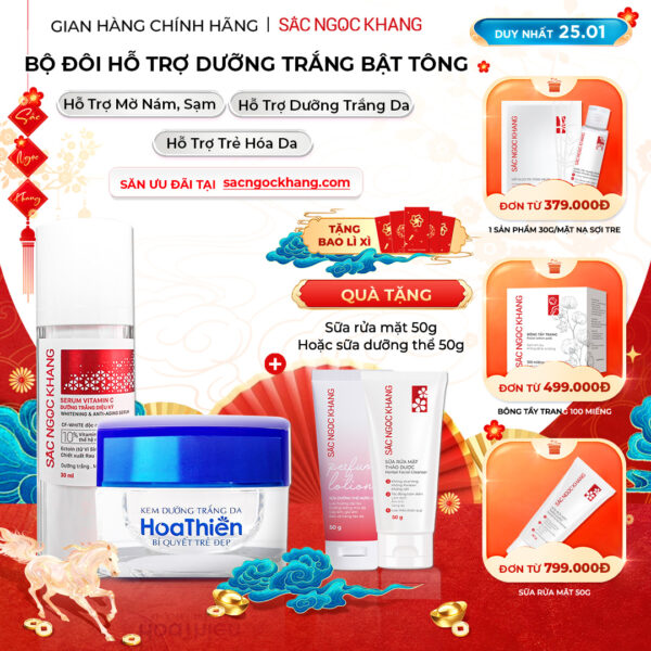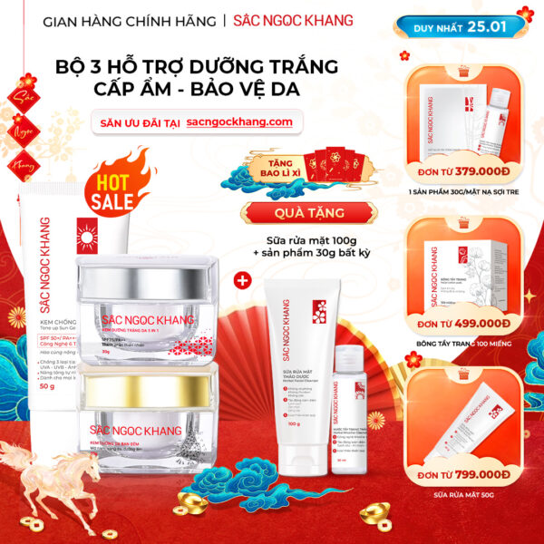⇒ Serum Vitamin C Dưỡng Trắng Diệu Kỳ Sắc Ngọc Khang – “chiến binh” không thể thiếu trên hành trình chinh phục làn da sáng mịn hoàn hảo, “tạm biệt” làn da không đều màu, thâm sạm, nám, tàn nhang nhờ công thức độc quyền với 3 tác động mạnh mẽ: