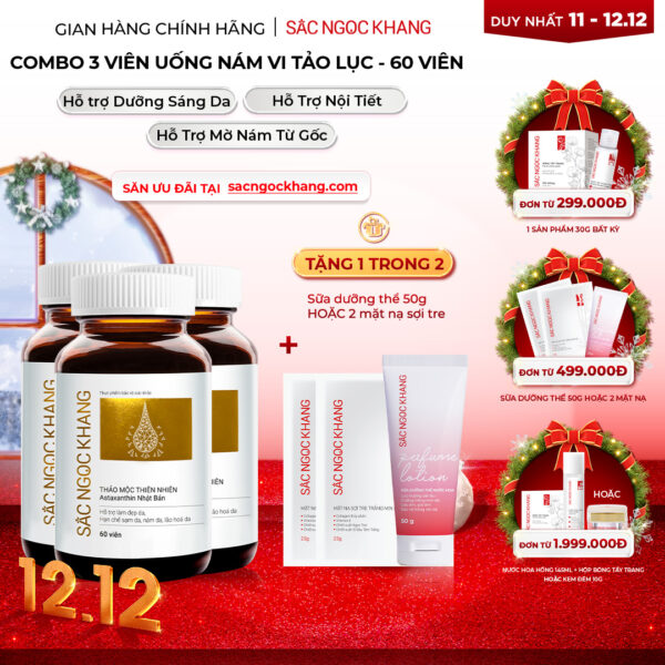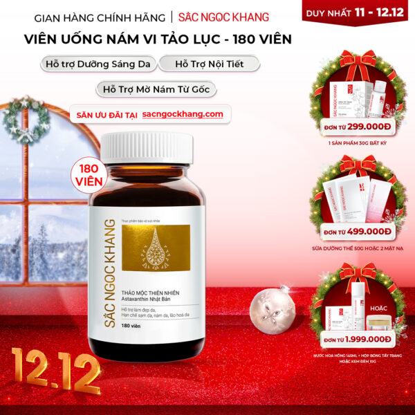 – Astaxanthin từ Vi Tảo Lục Nhật Bản được chứng minh có khả năng chống oxy hóa gấp 110 lần so với Vitamin E, gấp 6000 lần so với Vitamin C, cho tác động ức chế quá trình hình thành sắc tố đen, đào thải nám, sạm, tàn nhang, giúp da luôn căng mịn, tràn đầy sức sống. Không những giúp làm đẹp da, Astaxanthin còn giúp ngăn ngừa tác hại của các gốc tự do sản sinh, làm chậm quá trình lão hóa, giúp cơ thể trẻ khỏe. Đặc biệt, Astaxanthin trong Viên uống Sắc Ngọc Khang ++ được nhập khẩu từ Tập đoàn AstaReal Nhật Bản (Tập đoàn TOP đầu thế giới với hơn 70 năm nghiên cứu chuyên sâu và nuôi trồng Astaxanthin tự nhiên).