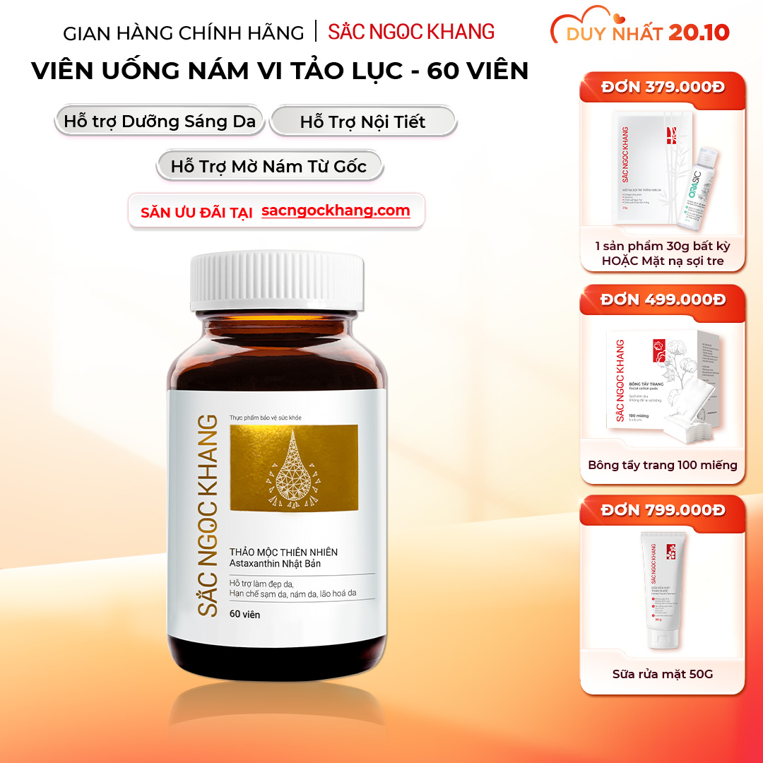 Viên Uống Vi Tảo Lục Sắc Ngọc Khang Mờ Nám, Đẹp Da, Hạn Chế Lão Hóa 60v