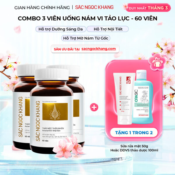 Giá gốc là: 3.099.000₫.1.980.000₫Giá hiện tại là: 1.980.000₫.Combo 3 Viên Uống Mờ Nám, Hạn Chế Lão Hóa, Khỏe Đẹp Da Sắc Ngọc Khang++ 120v – Liệu trình 3 tháng