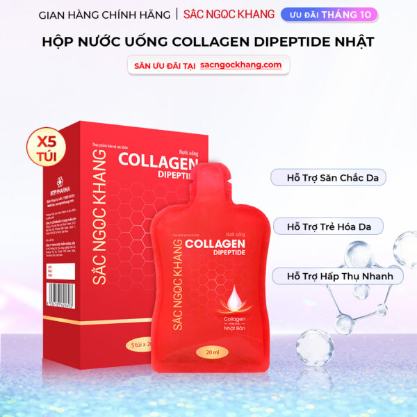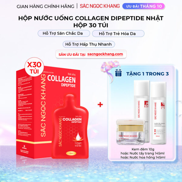 Nước Uống Collagen Dipeptide Mờ Nếp Nhăn – Dưỡng Ẩm Mịn Da Sắc Ngọc Khang (Hộp 30 túi x 20 ml)