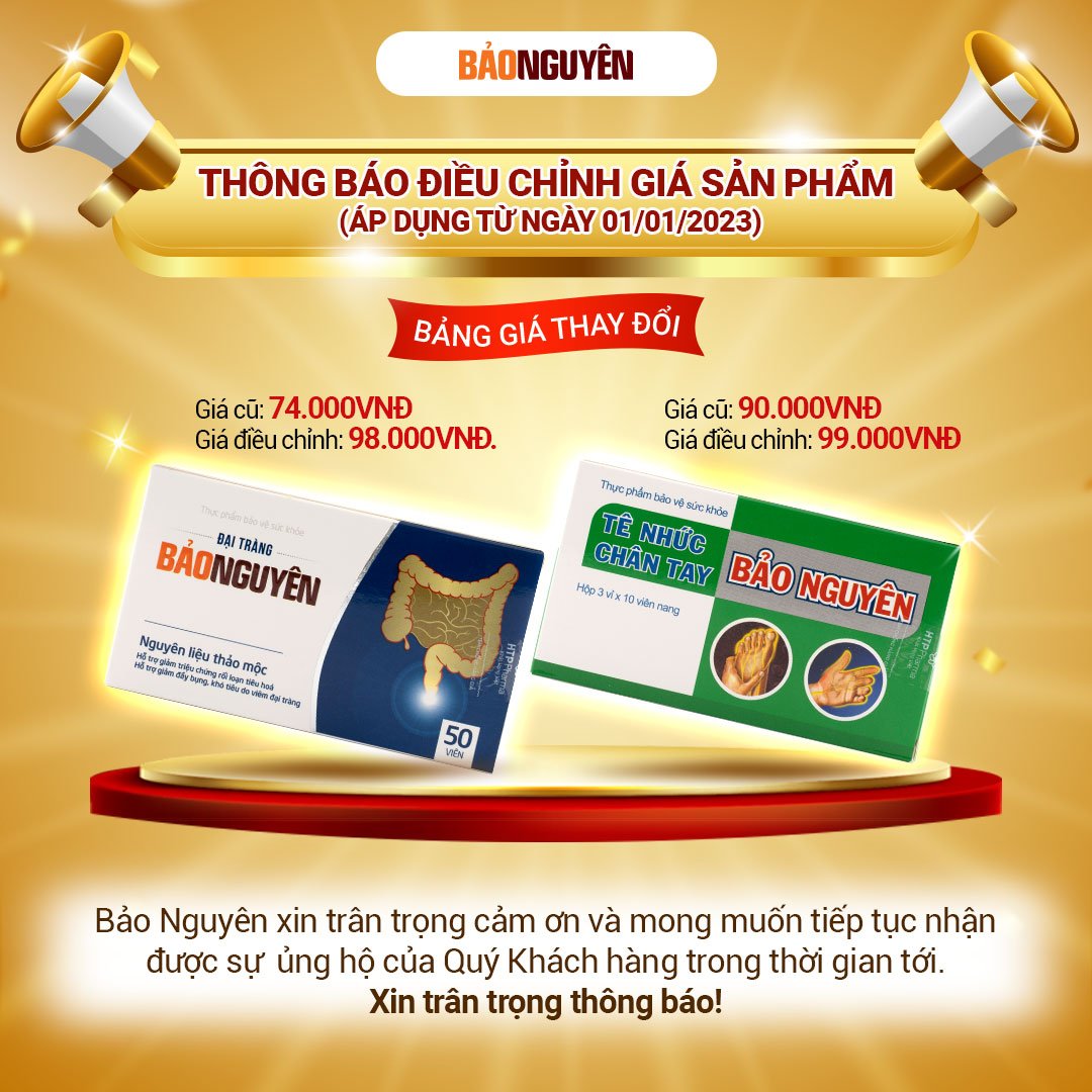 [THÔNG BÁO] ĐIỀU CHỈNH GIÁ SẢN PHẨM TÊ NHỨC CHÂN TAY BẢO NGUYÊN VÀ ĐẠI TRÀNG BẢO NGUYÊN
